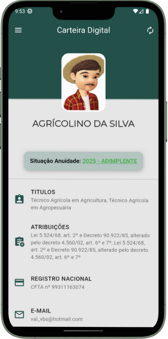 É um aplicativo desenvolvido pelo CFTA onde é possível visualizar sua carteira profissional digital.